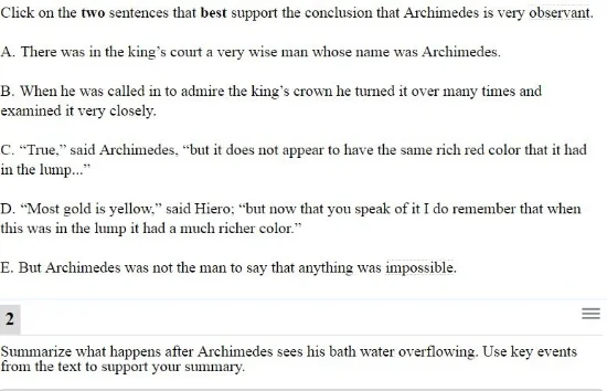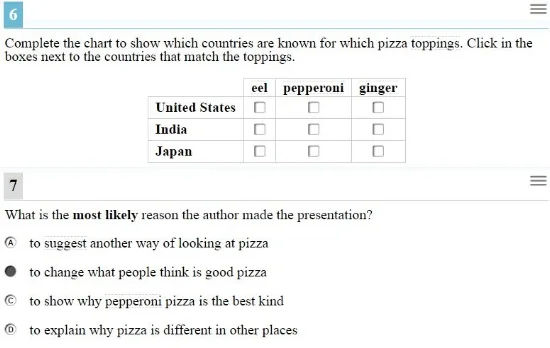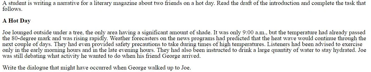 For Speaking and Listening questions, students will listen to a variety of one-minute informational texts and respond to listening comprehension questions. Students have the ability to individually rewind the audio or pause to take notes as needed. The listening comprehension questions are very similar in content to the reading comprehension questions.